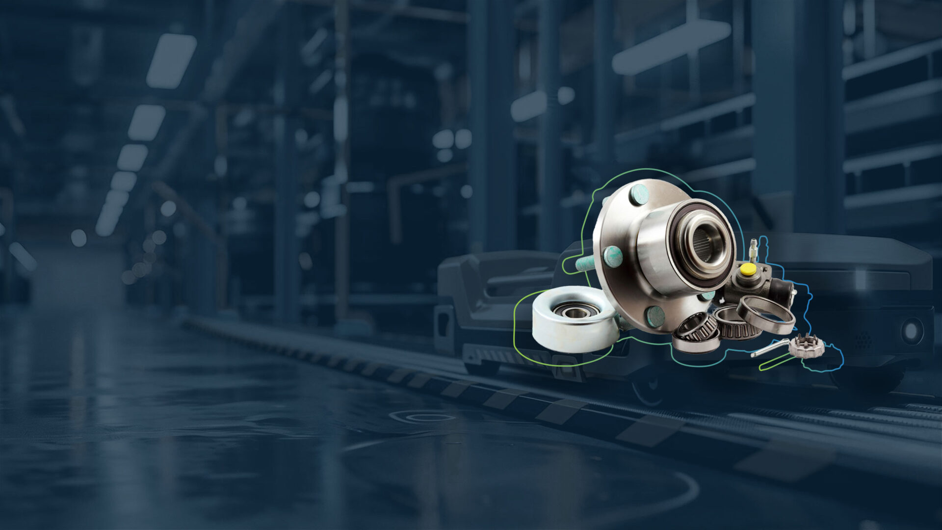 Conveyor technology: In the periphery of the warehouse, an infeed and outfeed conveyor system transports the load carriers to the corresponding work stations.
