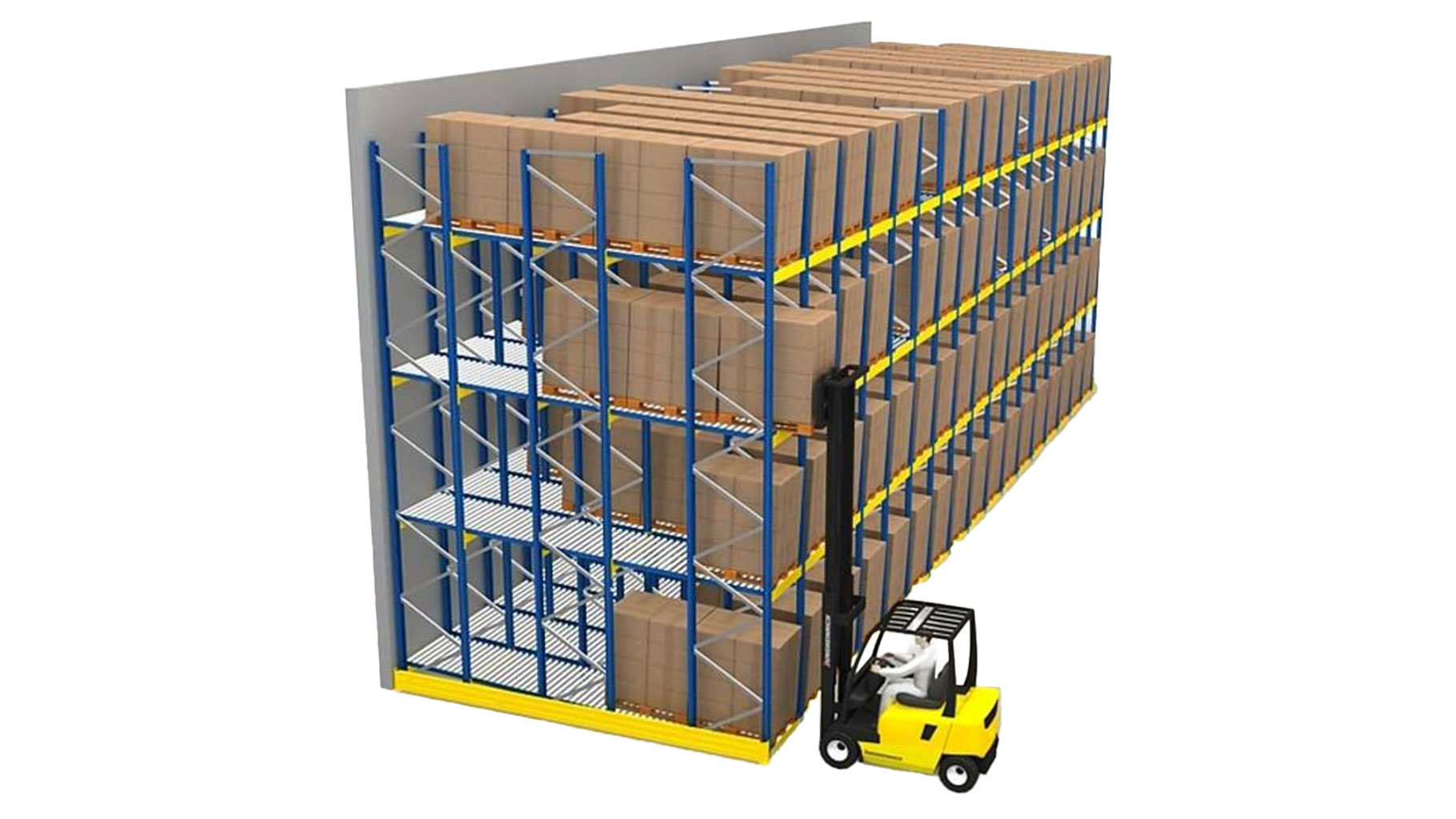 In this storage system, the racks consist of channels in which the pallets are stored one behind the other on roller conveyors. An electrically operated pallet shuttle enters the channels autonomously, transports the pallets to the desired position and places them there. The shuttles usually work according to the FIFO or LIFO principle, depending on the storage strategy. Loading and unloading takes place via transfer points at the rack entrance, where the shuttle is supplied with pallets by a forklift truck or an automated system. The system enables a high storage density as no aisles are required between the rows of racks. Pallet shuttles can be used in push-back racking with channels up to 60m long. In addition, the use of multiple shuttles increases efficiency and significantly reduces loading and unloading times.